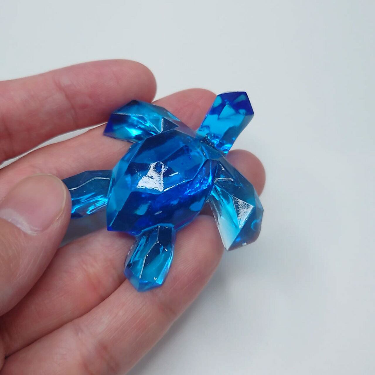 ローポリゴン化したウミガメの3Dモデルから作られた原型を用いているので、カットされた宝石のように面がキラキラ光ります。